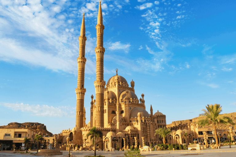 This guided tour of the city begins in its charming old town, home to the impressive Golden Mosque, one of Sharm el-Sheikh's most iconic landmarks. During the tour, you'll have the opportunity to enjoy tea in a traditional café and browse the local shops. On the return journey, you'll visit the El Sama Ayein Orthodox Church, a true work of art hand-painted by Egyptian artists over two years.