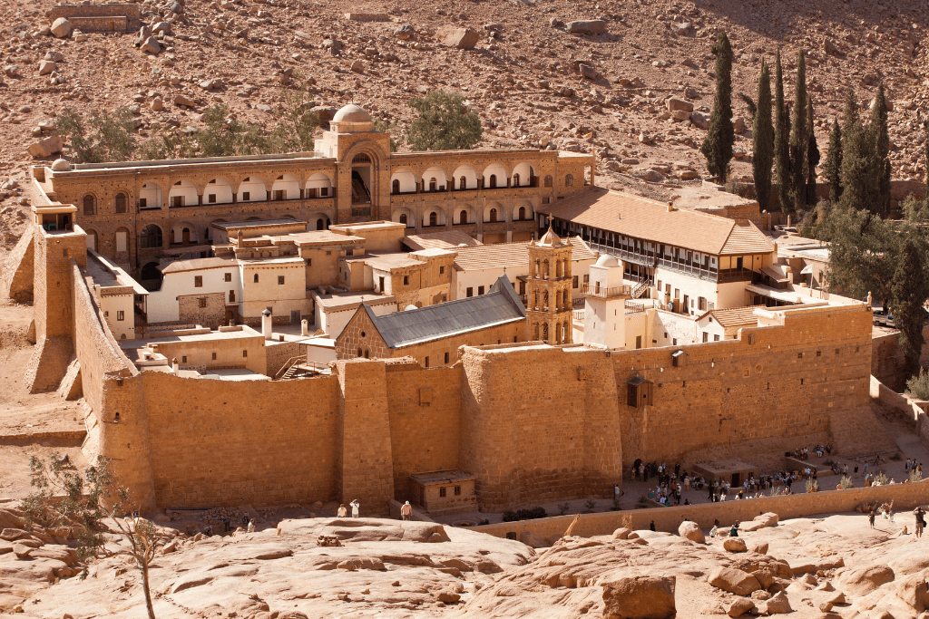 After the descent, a visit to St. Catherine's Monastery is scheduled for around 9:00 AM, where you can see the Basilica, the Altar, the Burning Bush, and Moses' Well.