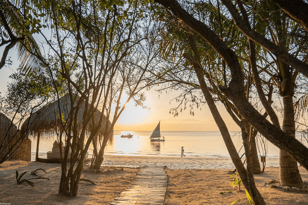 This remote retreat sits on miles of pristine white sands within the Bazaruto National Marine Park.