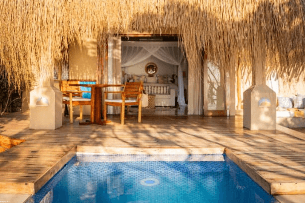 Thatched villas use traditional Mozambique materials to create a chic modern design. All villas are secluded in vegetation just a few steps from the beach and each has a Mozambican butler host. Like all of Mozambique’s southern beaches, the beach is tidal, but as every villa here has its own private plunge pool you’ll be able to take a dip at any time of day. For the best views and a larger plunge pool, opt for an Infinity Beach Villa.