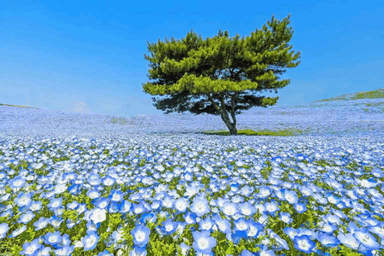 Get a glimpse of bygone Japan in the port city of Hitachinaka, located around 100 miles northeast of Tokyo on Honshu. Hitachi Seaside Park is considered one of the most beautiful places in the entire country, blanketed in millions of flowering plants; during late spring, the park is awash in a sea of vibrant blue nemophila blossoms. Follow the coast down to the 9th-century Oarai Isosaki Shrine; its revered Kamiiso-no-Torii gate is believed to be where the gods descended to earth. Ushiku Daibutsu, a 390-foot-high figure of Buddha, stands among the world’s tallest statues; step inside to view some 3,000 golden buddha statuettes.