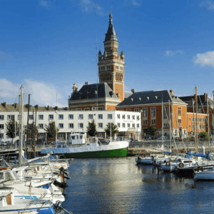 Dunkirk is France’s third-largest port. Located on the low-lying area of French Flanders near the Belgian border. It is perhaps most famous as the site of the “Dunkirk Miracle” evacuation of nearly 400,000 troops from under the guns of the German forces during WWII in May of 1940. By order of British Prime Minister Winston Churchill, and fleet of over 900 ships and boats was dispatched across the English Channel and retrieved the British and French troops trapped there to safety in England. Less well-known, the free-standing Dunkirk Belfry played an important role as one pole of a scientific measurement at the end of the 18th century that resulted in the creation of the standard meter length measure. Nearby Lille, France possesses one of the most gracious city centers in Europe, the Grand Place, graced with beautiful and elaborate civic buildings and churches.