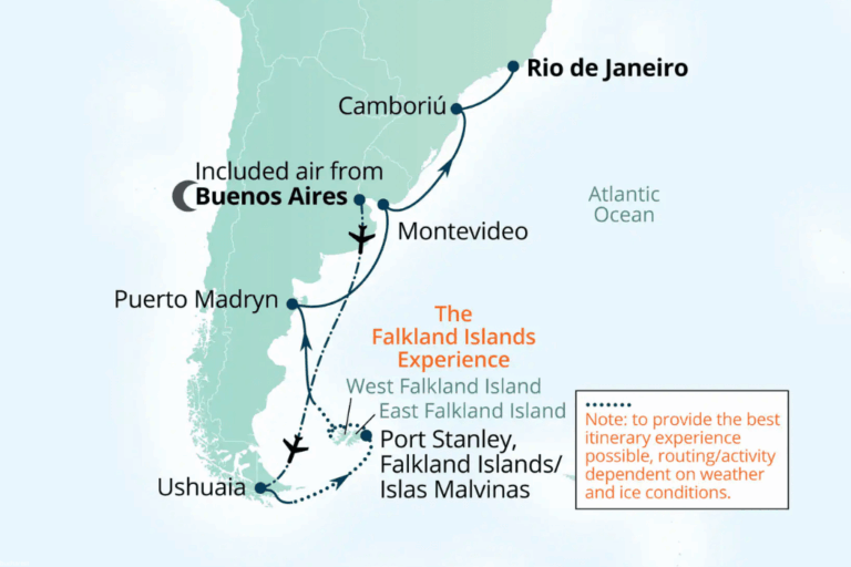 Set off aboard Seabourn Venture on a stirring expedition through the untamed landscapes of South America and the remote Falkland Islands, where rugged coastlines, windswept plains, and wildlife-rich waters await. Paddle or dive into hidden inlets, watch albatrosses glide overhead, and witness dramatic sunsets scattering colors across wild horizons. Between intimate shore excursions, retreat to your elegant suite and savor Seabourn’s refined cuisine, luxurious amenities, and warm hospitality as you traverse the ends of the earth.