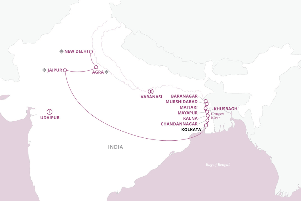 Your incredible Indian adventure ends early this morning, as you disembark the ship. If you have arranged a Uniworld departure transfer, you will be transferred to the Netaji Subhas Chandra Bose International Airport for your flight home. Or, extend your journey with an optional extension to Varanasi.