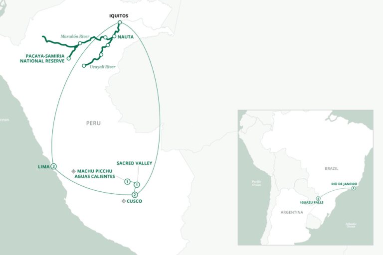 - Flights included between Lima & Iquitos, Iquitos & Cusco, and Cusco & Lima