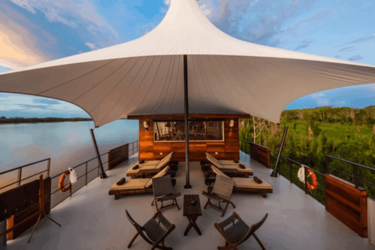 - 7-night cruise in a riverview stateroom on the luxurious Aria Amazon